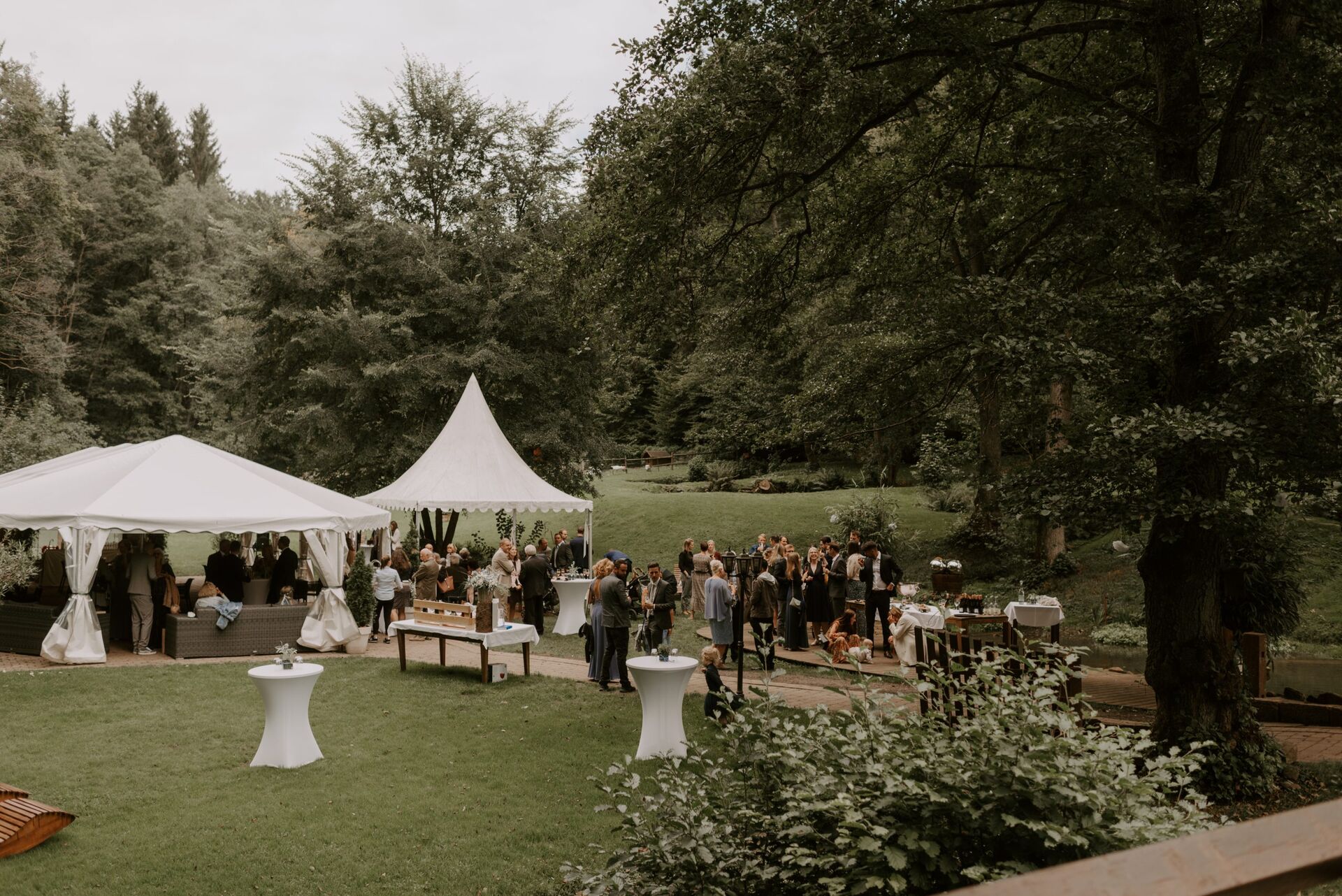 Nach der Zeremonie folgte ein festlicher Empfang im Garten, bei dem die Gäste köstliche Speisen und erfrischende Getränke genossen. Die Stimmung war ausgelassen, als die Gäste tanzten, lachten und die Liebe des Brautpaars feierten.